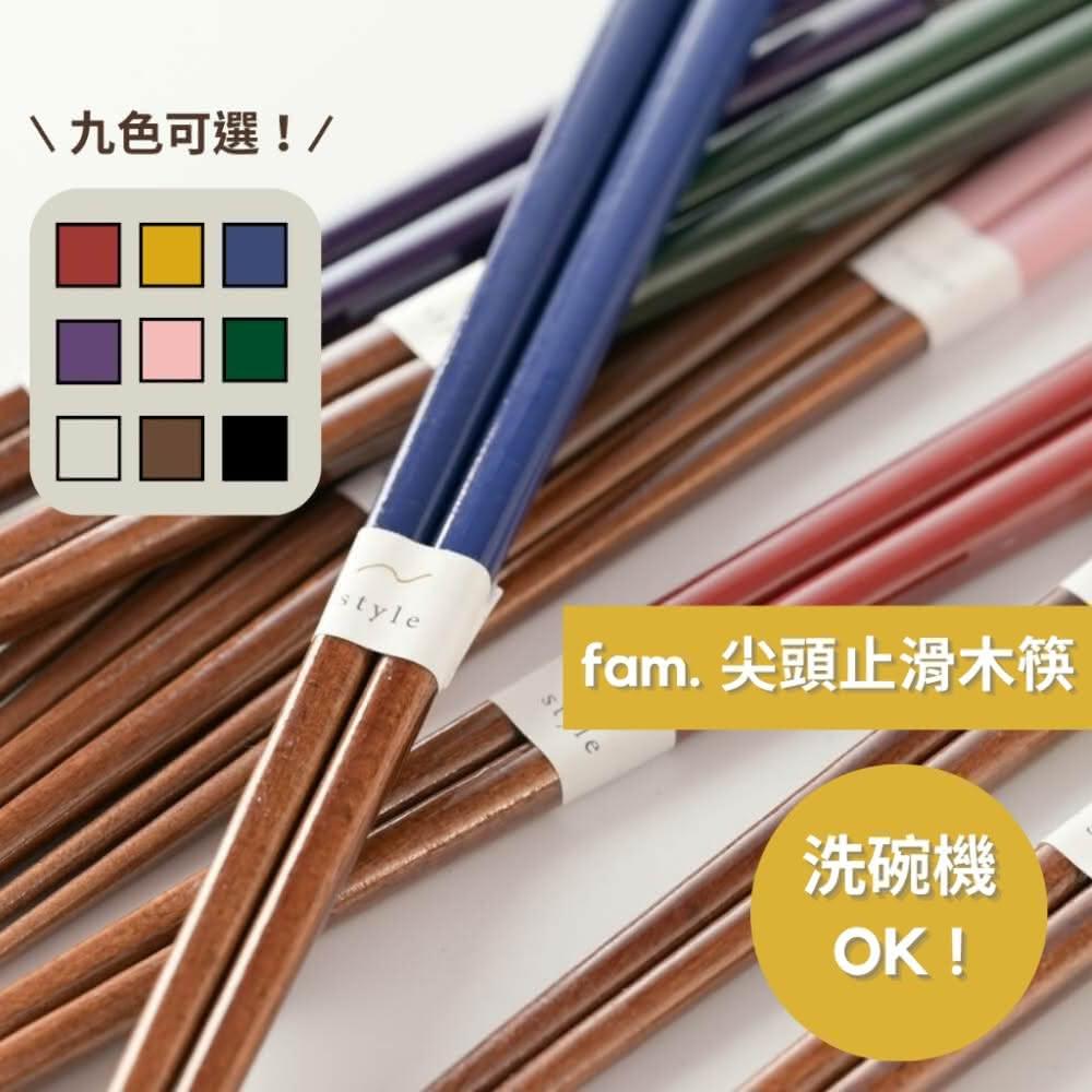 [拾憩]fam. 尖頭止滑木筷 九色(可洗碗機 筷子 日本筷子 止滑筷 木筷子 環保筷 夫妻筷 環保餐具 送禮)