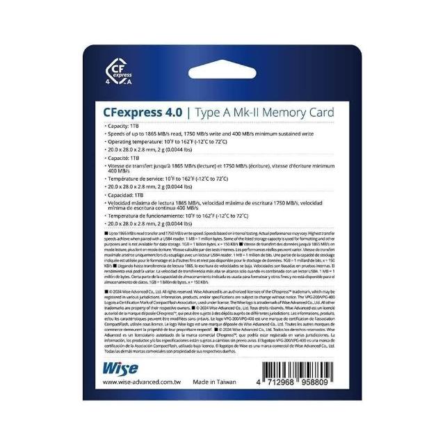 Wise 裕拓Wise CFexpress 4.0 Type A Mk-II 超高速記憶卡 /256GB/512GB/1TB