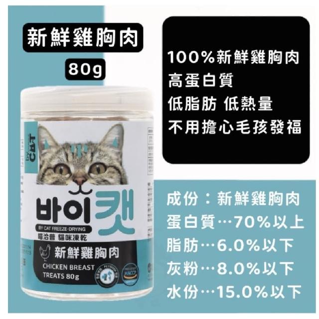 喵洽普貓咪凍乾零食 雞胸肉 80g(貓零食 貓凍乾 寵物凍乾 雞肉 馬肉 毛鱗魚)