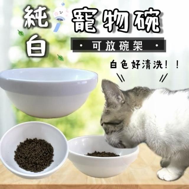 白色貓碗 可放碗架(寵物碗 貓咪水碗 黑色寵物碗 黑色貓飼料碗)