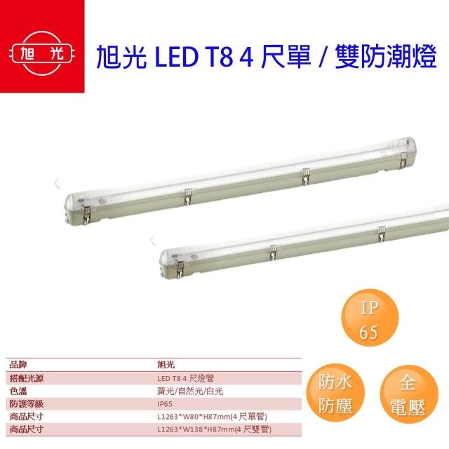 旭光 LED T8 防潮燈 4尺 雙管 單管 防水燈具 燈管 IP65 戶外燈 含燈管 (一套兩組) 宗宏材料