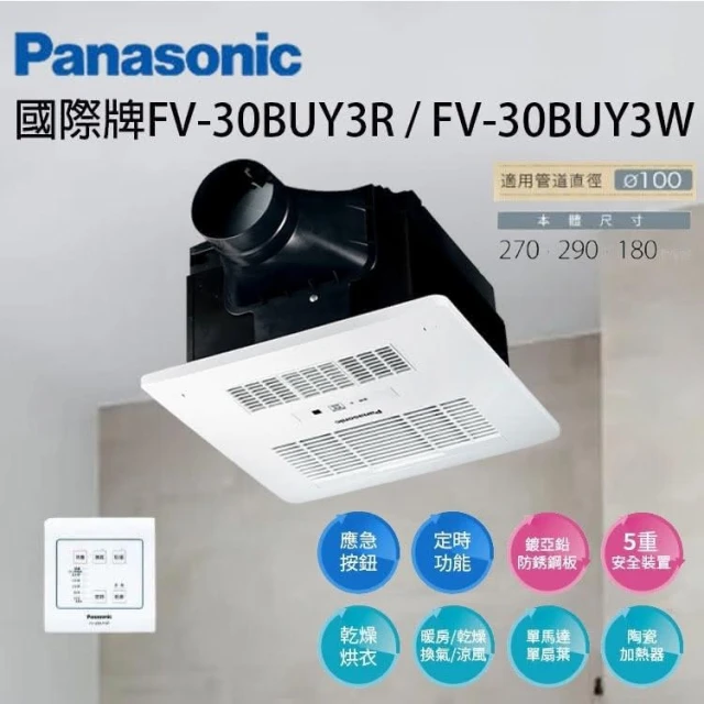 Panasonic 國際牌線控 多功能循環暖風機 110/220VFV-30BUY3R/30BUY3W 換氣扇 排風扇 浴室乾燥暖風機 宗宏材料