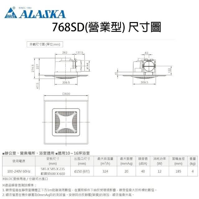 ALASKA 阿拉斯加阿拉斯加 無聲換氣扇 寧靜海728D 排風扇 抽風扇 浴室排風機 宗宏材料