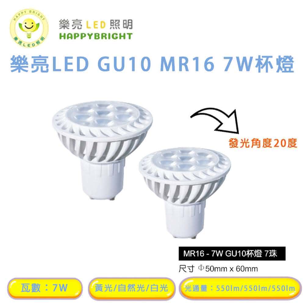HappyBright 樂亮樂亮 LED GU10 7W 採歐司朗燈珠 免安定器 杯燈 投射燈泡 MR16 杯燈型 燈泡 全電壓(GU10 一組5入) 宗宏材料