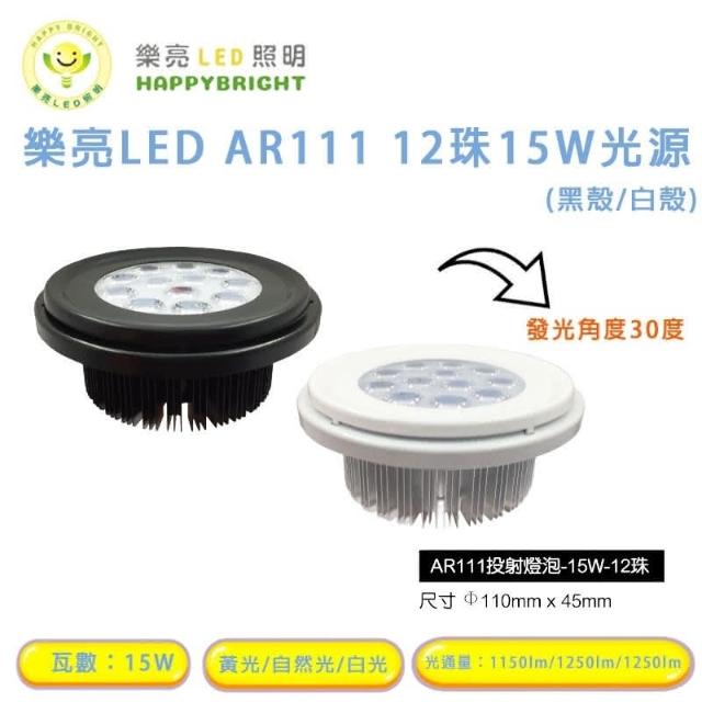 HappyBright 樂亮樂亮 AR111 12珠 15W 黑色 LED 銀色 崁燈 嵌燈 方形崁燈燈泡 軌道燈燈泡 (一組兩入) 宗宏材料