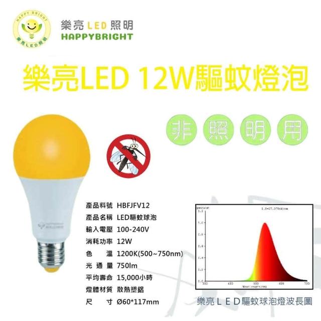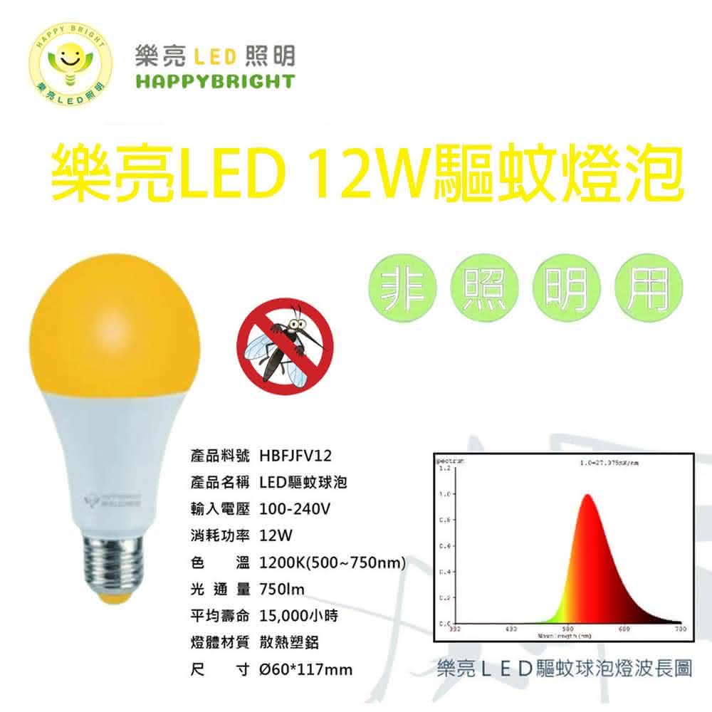 HappyBright 樂亮樂亮 LED 12W 驅蚊燈泡 防蚊燈泡 新款 非照明使用 防蚊燈泡 居家戶外 露營必需品 驅蟲 無滅蚊功效(驅蚊燈泡) 宗宏材料