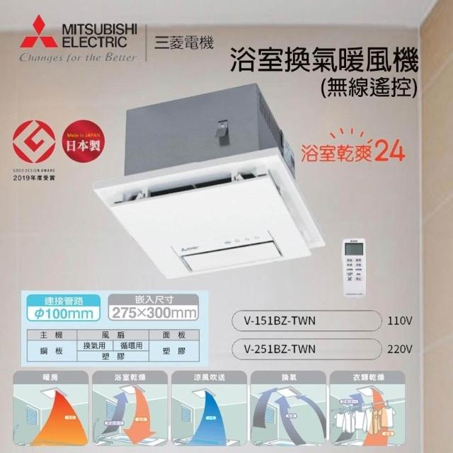 MITSUBISHI 三菱電機日本製 V-251BZ V-241BZ V-151BZ V-141BZ 無線遙控線控面板 浴室涼暖風機 保三年 宗宏材料