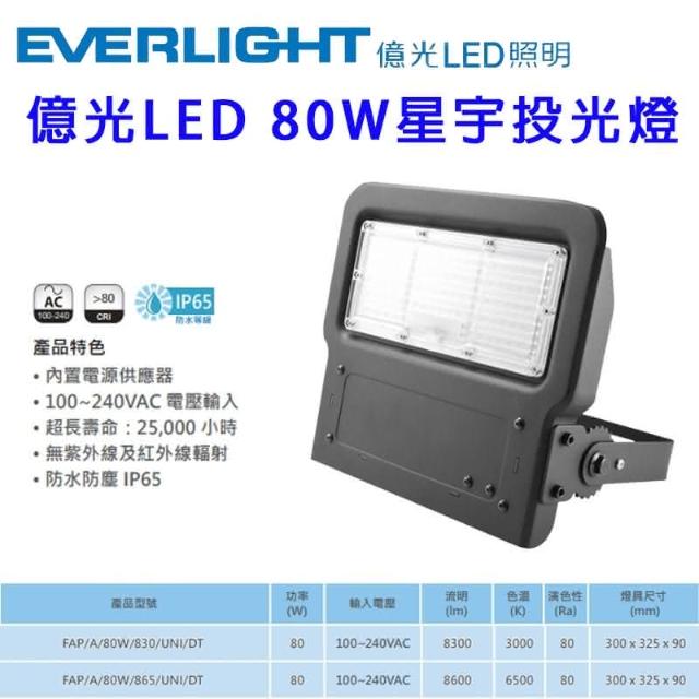 Everlight 億光億光 LED 80W 120W 星宇投光燈 泛光燈 投射燈 看板燈 IP65 防水 全電壓 宗宏材料