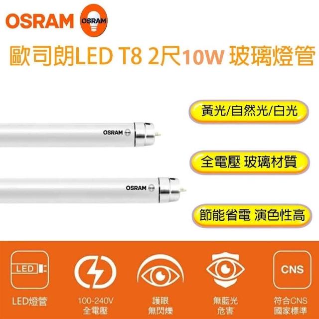 Osram 歐司朗T8 LED燈管 2尺燈管 10W T8燈管 全電壓 日光燈管 省電燈管 (一組25隻) 宗宏材料