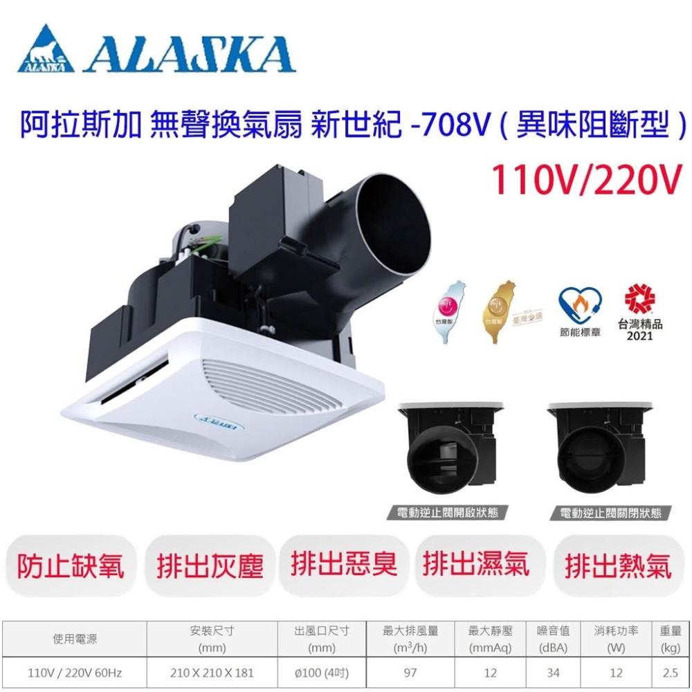 ALASKA 阿拉斯加新世紀-708V 708V 台灣製 110V/220V 超靜音 排風扇 抽風扇 無聲換氣扇 宗宏材料