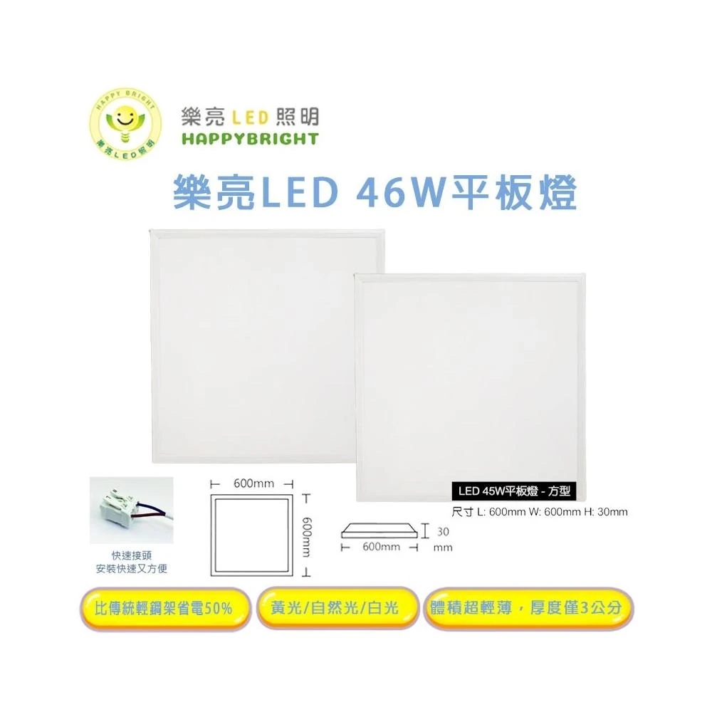 HappyBright 樂亮46W LED 平板燈 輕鋼架燈 白光 黃光 自然光 附快速接頭 全電壓(一組六片) 宗宏材料