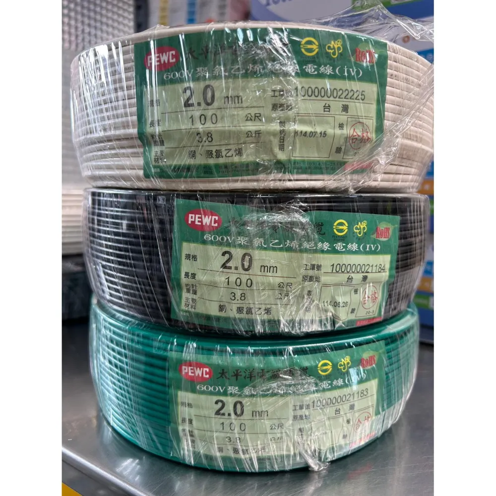太平洋太平洋 PVC電線 單芯 2.0 2.0mm 單線導體 整卷100M/1卷