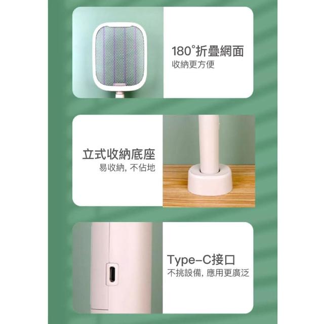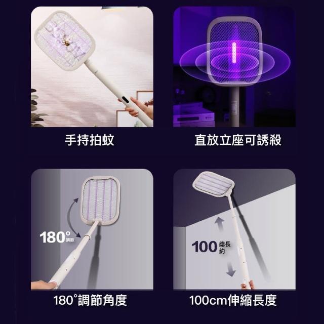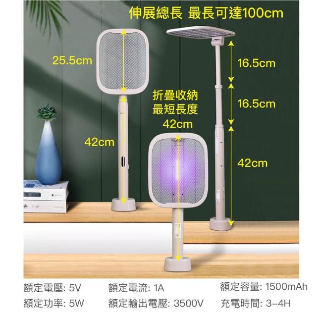 四合一二截式伸縮折疊電蚊拍(充電式電蚊拍+誘蚊燈)