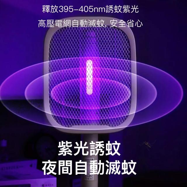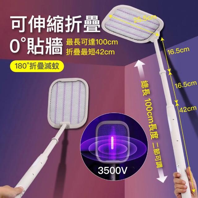 四合一二截式伸縮折疊電蚊拍(充電式電蚊拍+誘蚊燈)