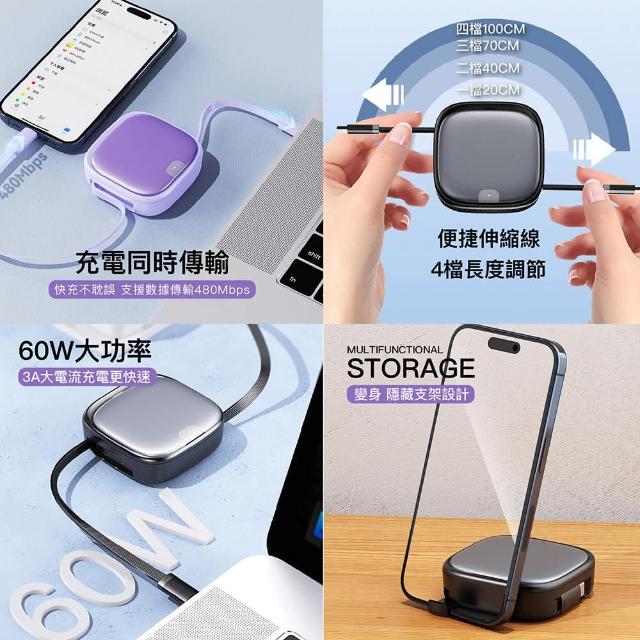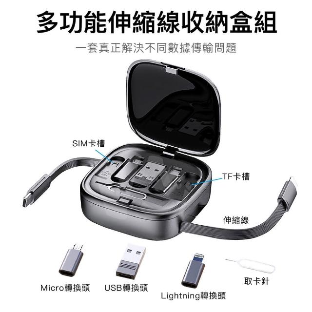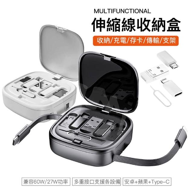 伸縮線收納盒 PD60W 快充充電線 轉接頭TF卡套裝盒 創意支架