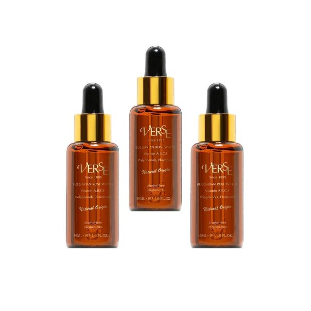 VERSE 唯詩3入組|保加利亞玫瑰純露30ml 滴管瓶(大馬士革玫瑰 玫瑰蒸餾精油 玫瑰多酚 維他命A 補水噴霧 玫瑰醇)