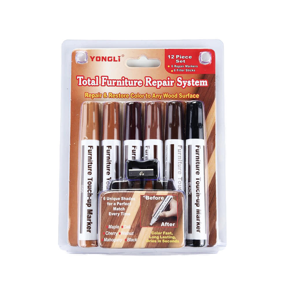 木紋地板筆 6色+6色+1卷筆刀/組 (家具補漆筆/地板維修補色筆)