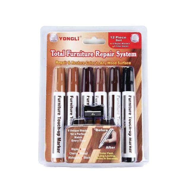 木紋地板筆 6色+6色+1卷筆刀/組 (家具補漆筆/地板維修補色筆)