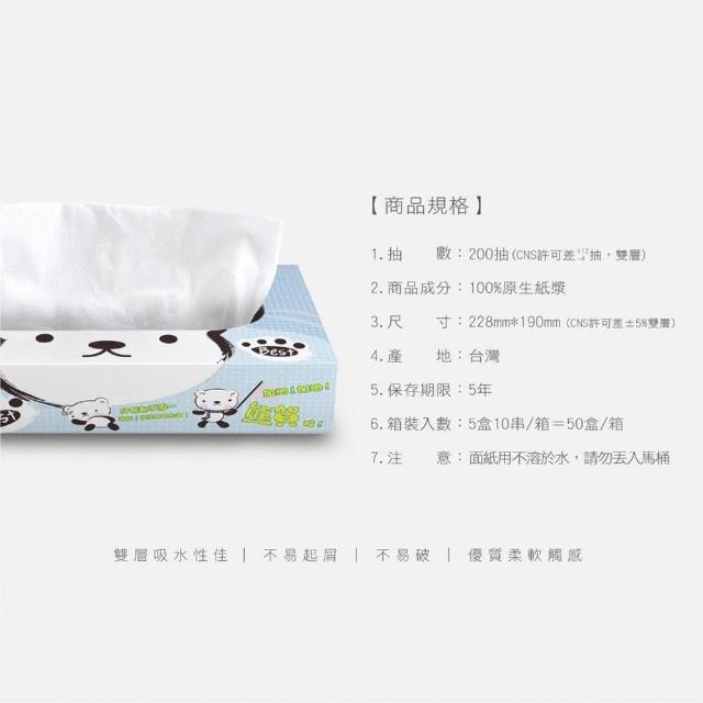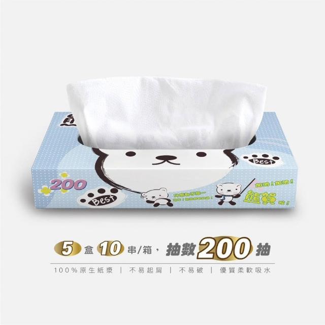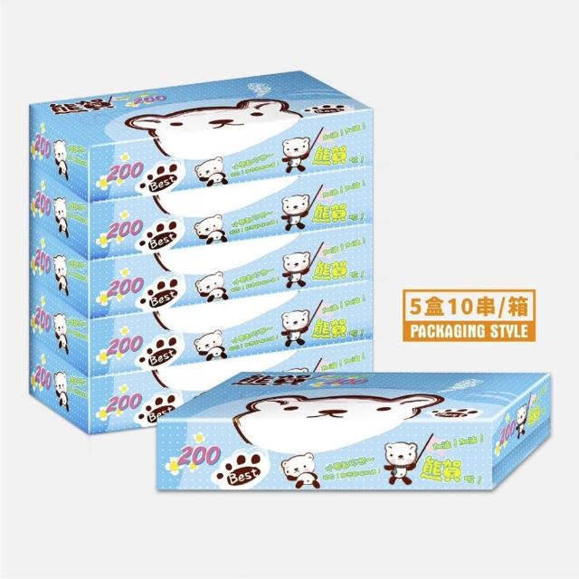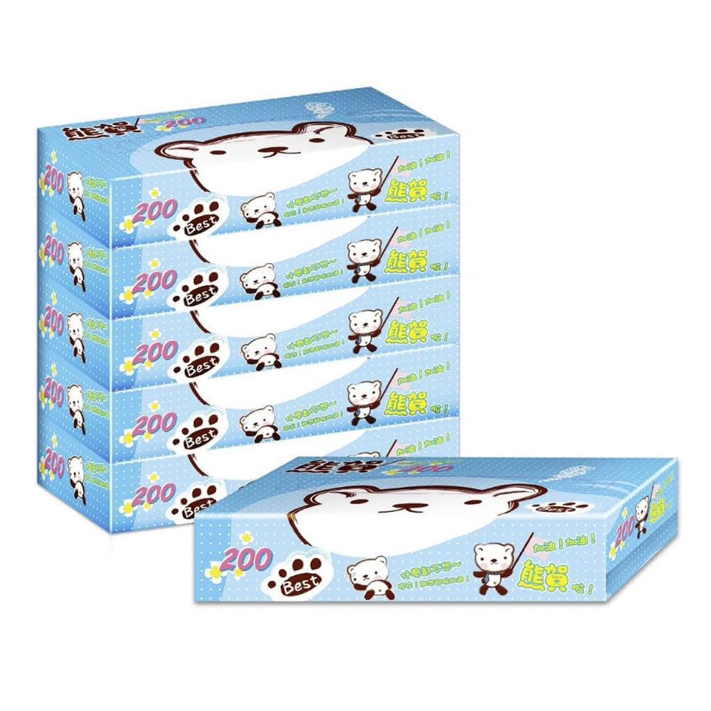 熊賀日式扁盒收取式面紙 200抽*5盒*10串 (箱購/盒裝衛生紙)