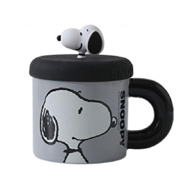 SNOOPY 史努比公仔杯蓋陶瓷馬克杯 黑色360ml