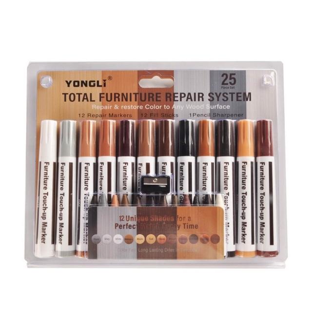 木紋地板筆 12色+12色+1卷筆刀/組 (家具補漆筆/地板維修補色筆)