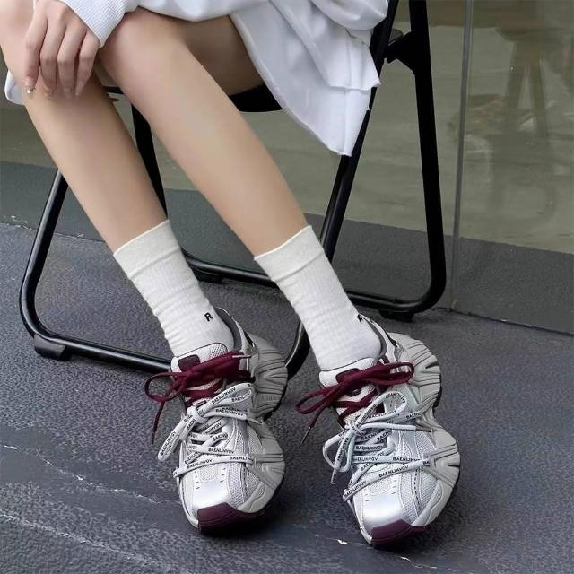 韓系 又美又飆 巴家雙色鞋帶透氣厚底老爹鞋 輕量運動老爹鞋(老爹鞋)