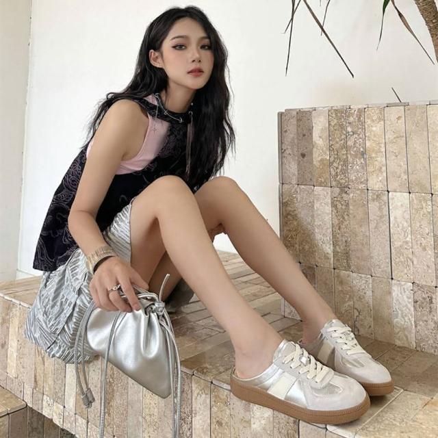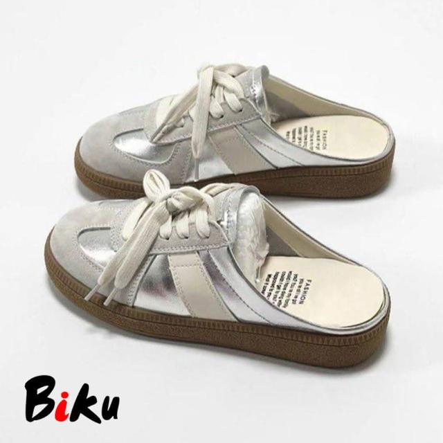 韓系 原地心動厚底綁帶德訓穆勒鞋 半包鞋 休閒穆勒鞋-BIKU/B酷