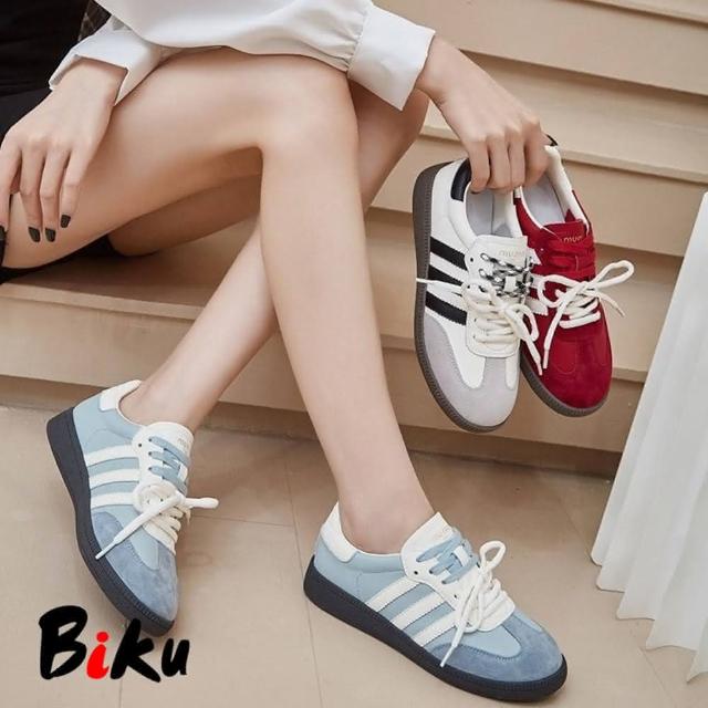 韓 多巴胺復古百搭鴛鴦鞋帶德訓鞋 休閒阿甘鞋 平底德訓鞋-BIKU/B酷