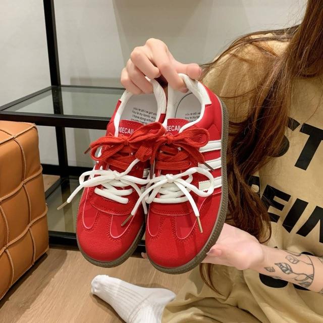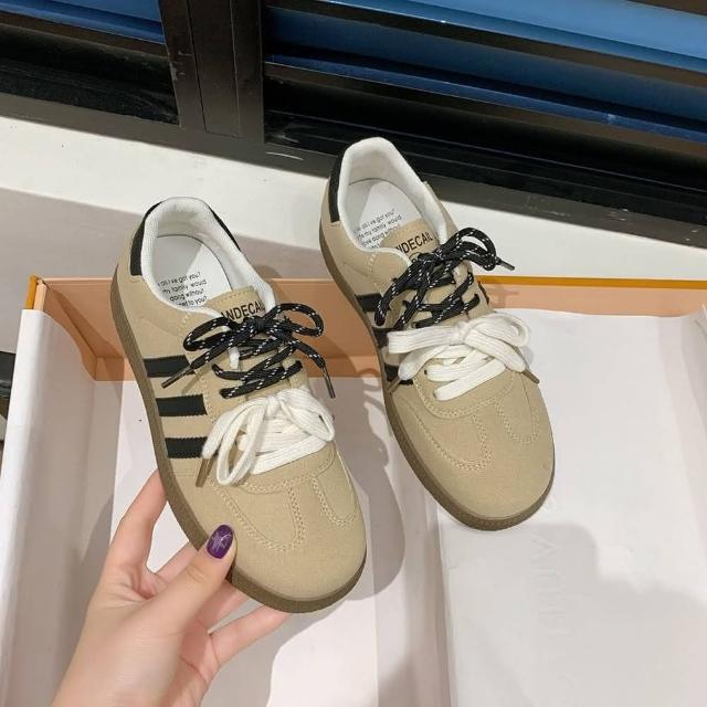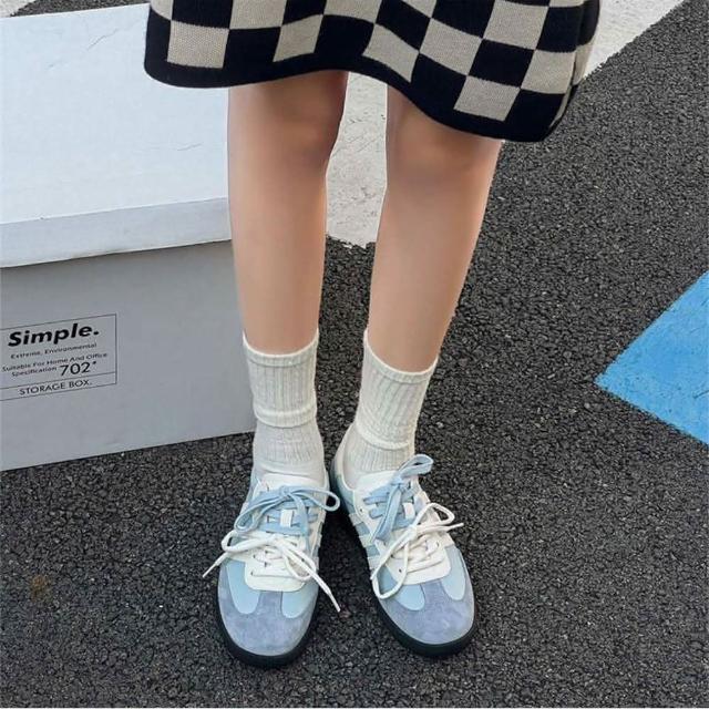 韓 多巴胺復古百搭鴛鴦鞋帶德訓鞋 休閒阿甘鞋 平底德訓鞋-BIKU/B酷
