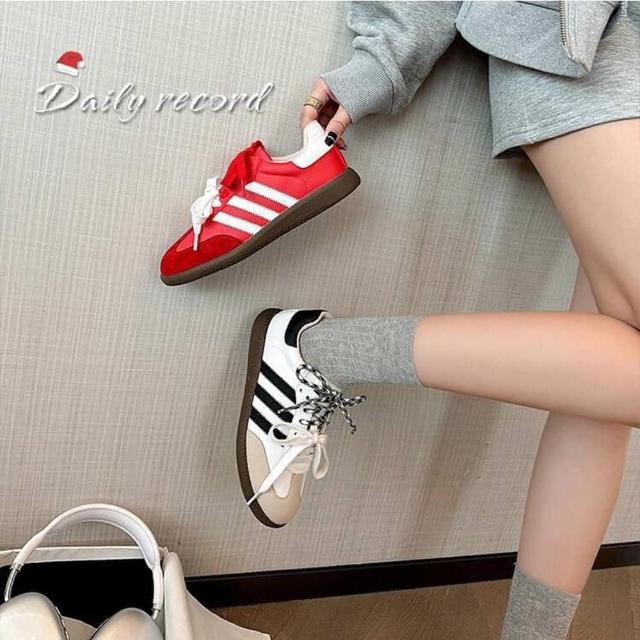 韓 多巴胺復古百搭鴛鴦鞋帶德訓鞋 休閒阿甘鞋 平底德訓鞋-BIKU/B酷