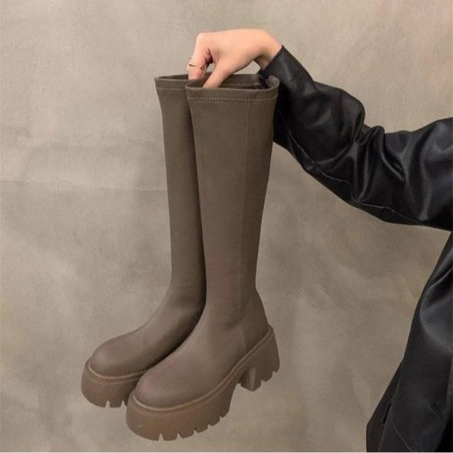 韓 原地心動 輕量波浪底瘦瘦長靴