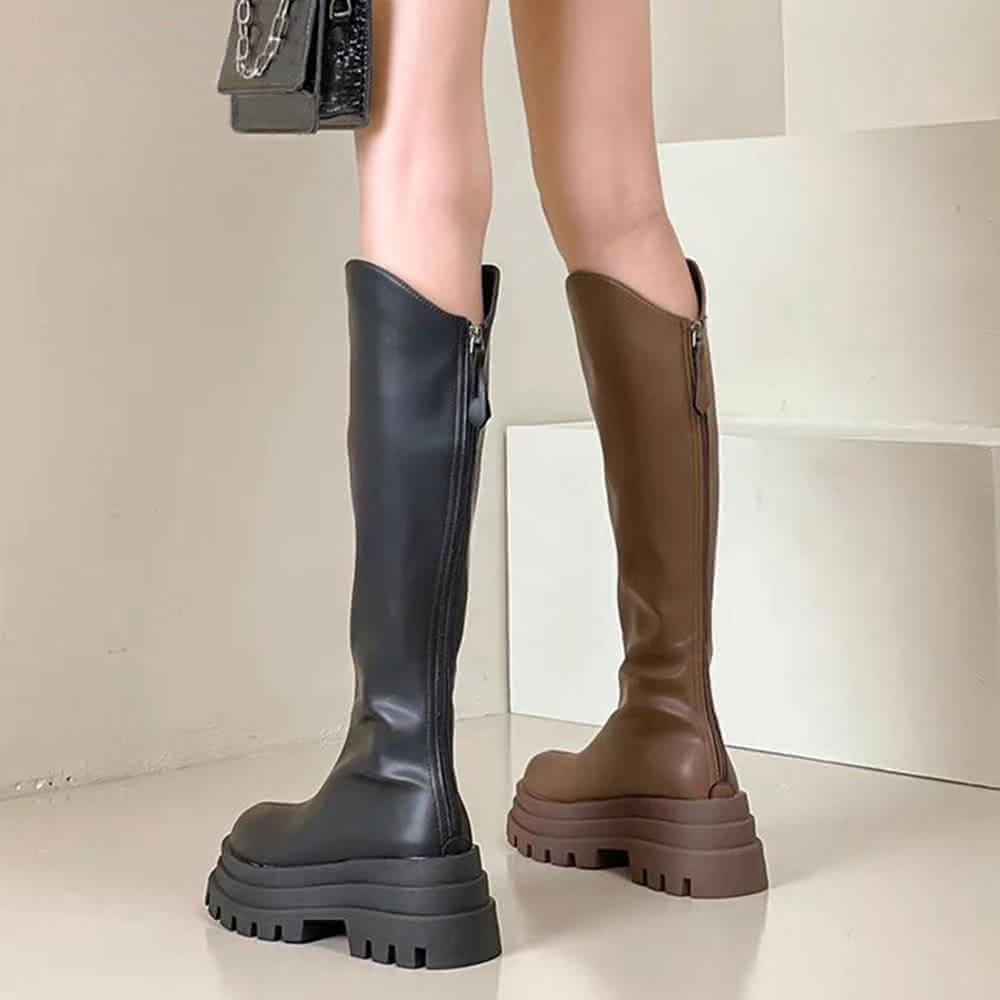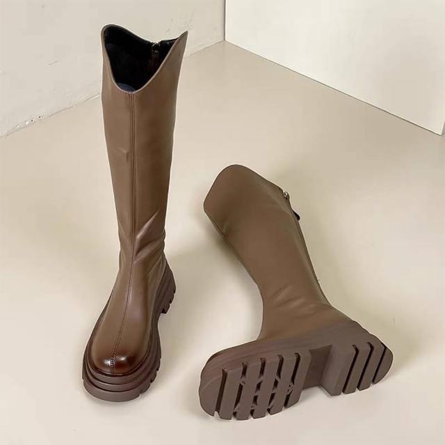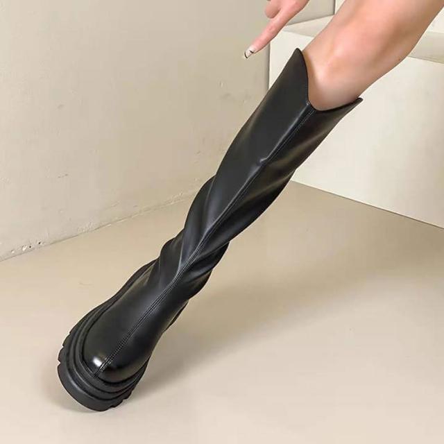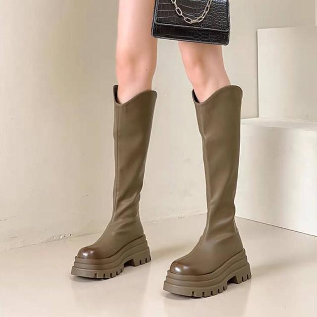 韓 超激瘦輕量V口鬆糕厚底長靴