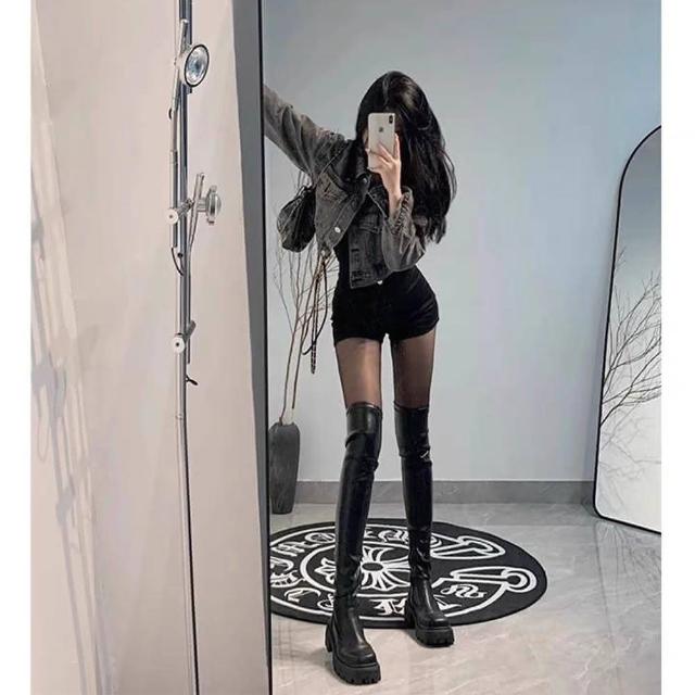 韓 完美比例 顯瘦不掉筒方糖過膝靴 彈力瘦瘦靴 厚底騎士靴