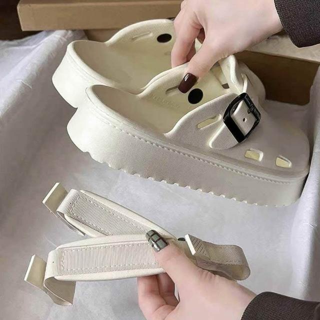 韓 歐膩質感懶人兩穿EVA麻糬厚底勃肯鞋 包頭半拖鞋 軟Q防水厚底海灘勃肯鞋-BIKU/B酷