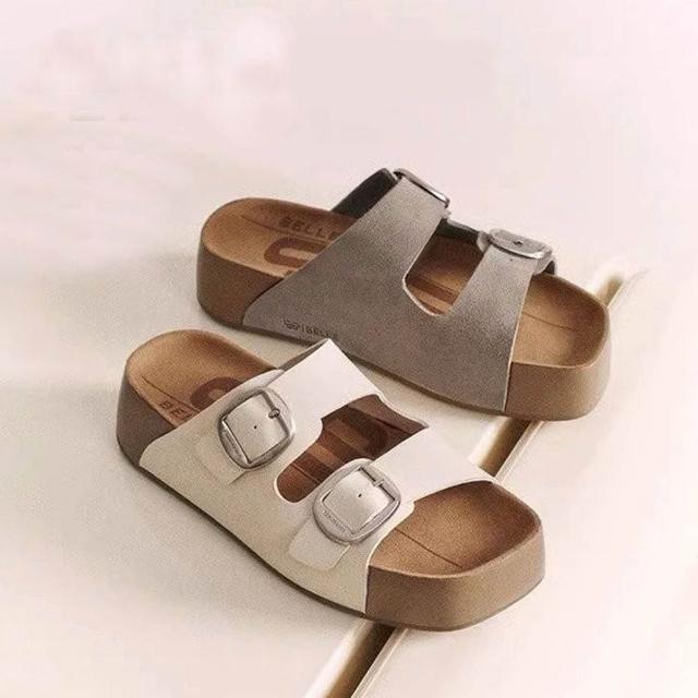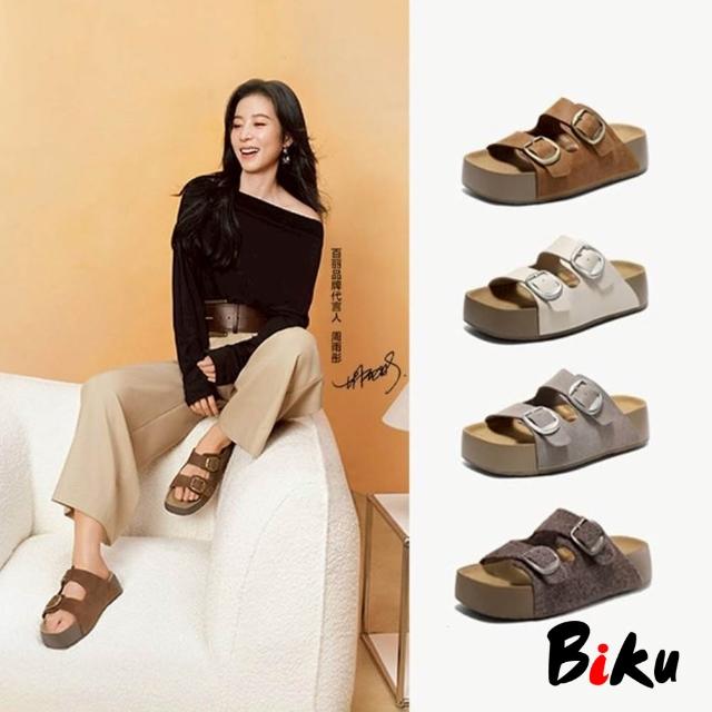 韓 周雨彤同款QQ熱壓吐司厚底勃肯拖鞋 Q軟厚底涼拖鞋-BIKU/B酷