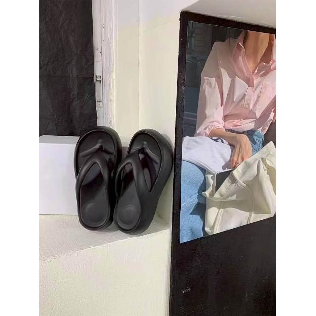 韓 海島渡假EVA麻糬感夾腳6CM厚底涼拖鞋 軟Q防水防滑厚底人字夾腳海灘拖鞋-BIKU/B酷