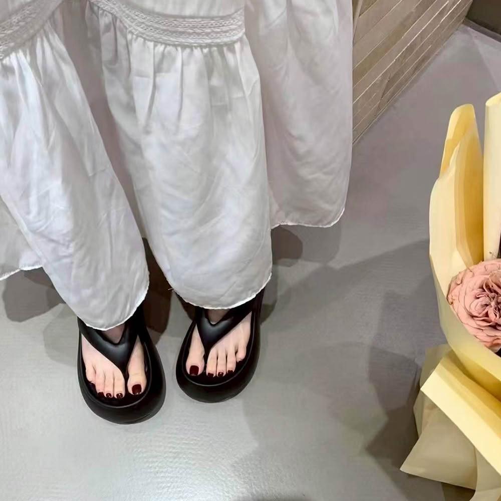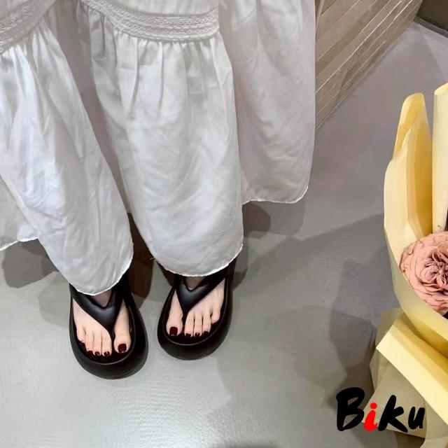 韓 海島渡假EVA麻糬感夾腳6CM厚底涼拖鞋 軟Q防水防滑厚底人字夾腳海灘拖鞋-BIKU/B酷