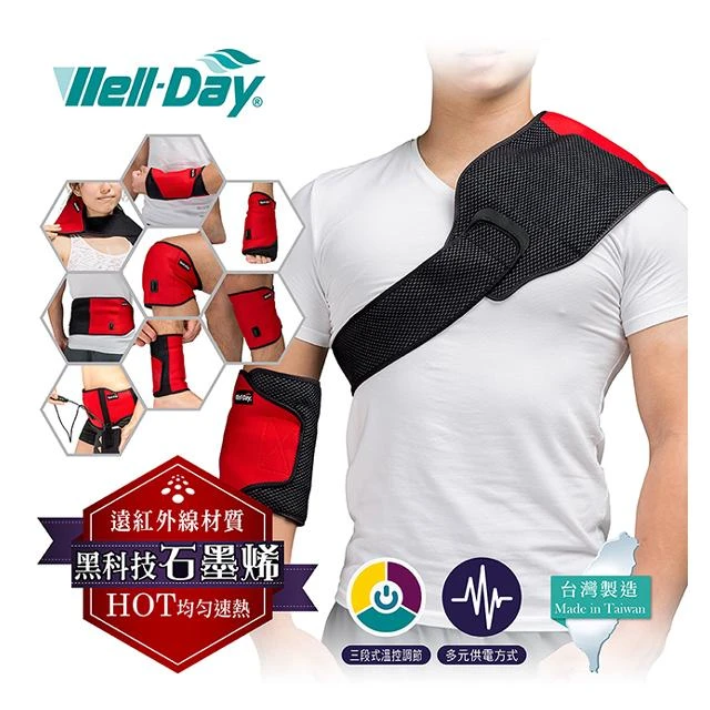 WELL-DAY 晶晏石墨烯 動力式熱敷墊 護腰/護膝/護踝/護肩/護肘/護腕/多功能帶 溫控熱敷 遠紅外線熱敷