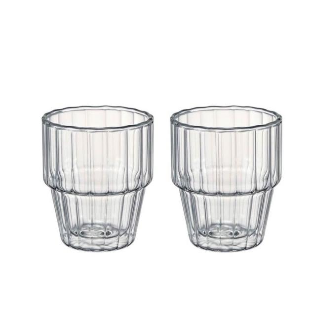 HARIO線紋雙層玻璃杯 2入組 300ml(HWS-4012-M)