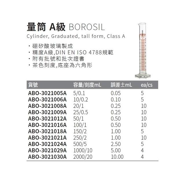 BOROSIL量筒 A級 Cylinder, Graduated, tall form, Class A