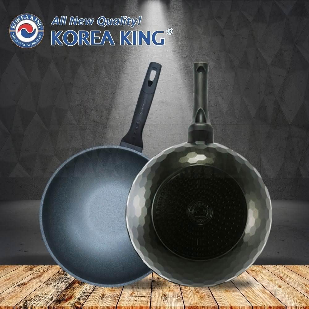 Korea King韓國製 蜂巢晶礦花崗岩不沾炒鍋 28cm韓國製不沾炒鍋 IH爐電磁爐適用(適用多種爐具可放洗碗機清潔)