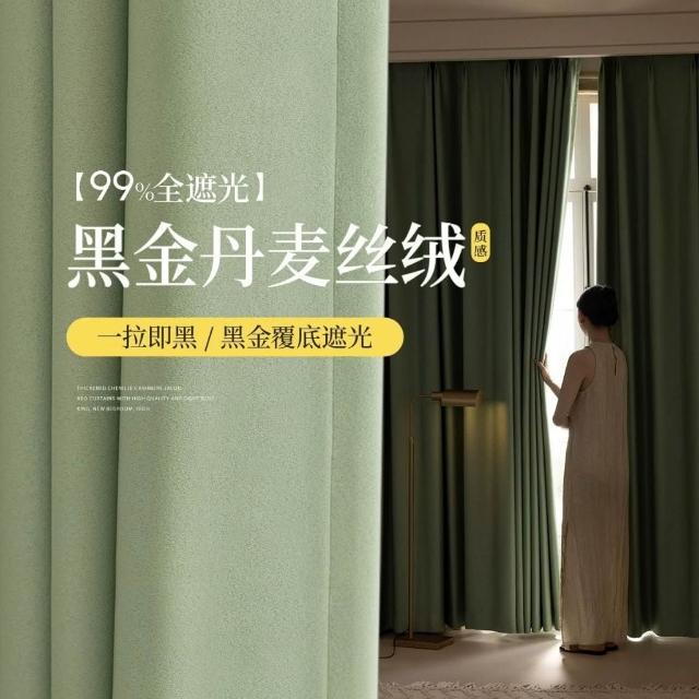 桃園速寄 免打孔掛鉤窗簾 四爪掛鉤款窗簾 黑金丹麥絲絨面料 隔熱防曬窗簾 純色百搭窗簾 客廳臥室遮光窗簾 遮光簾