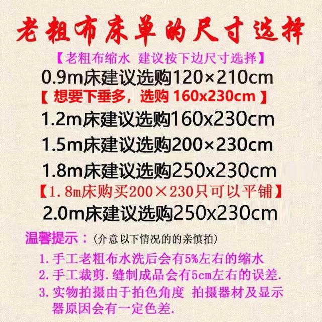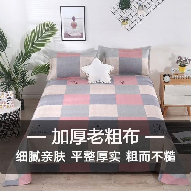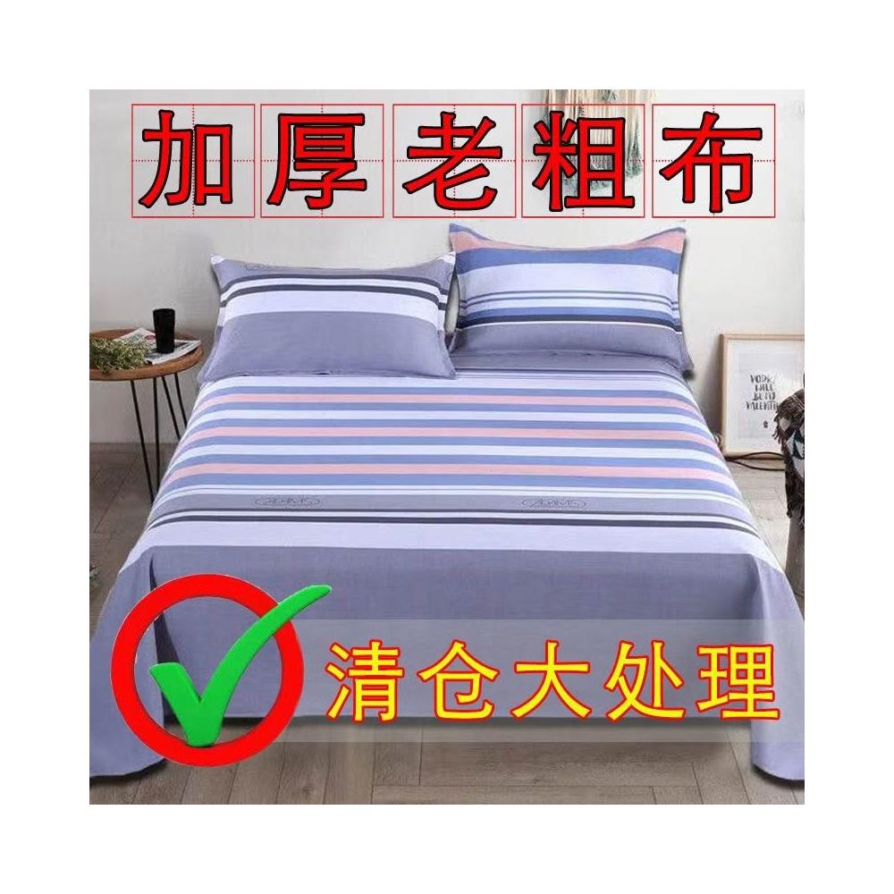 桃園速寄 夏季 老粗布床單 老粗布原棉面料 床品宿舍單人 舒適枕套三件套 涼感被單床單 單件加厚 活性印染
