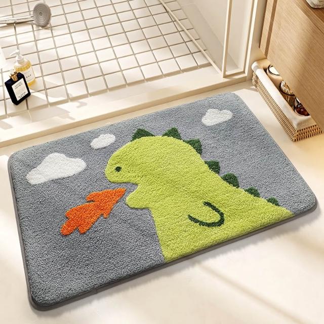 🚀台灣出貨&嚴選品質✨ 大江卡通動物植絨地毯地墊家用衛生間門口浴室防滑墊吸水腳墊