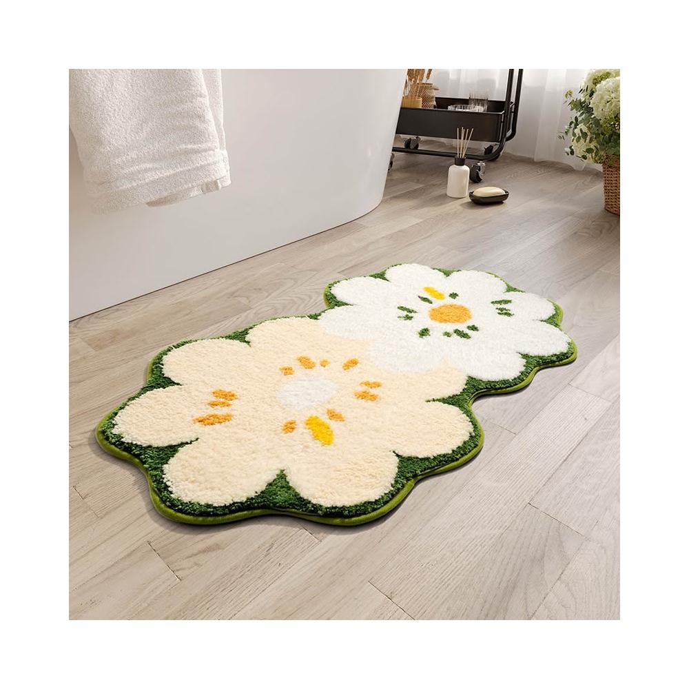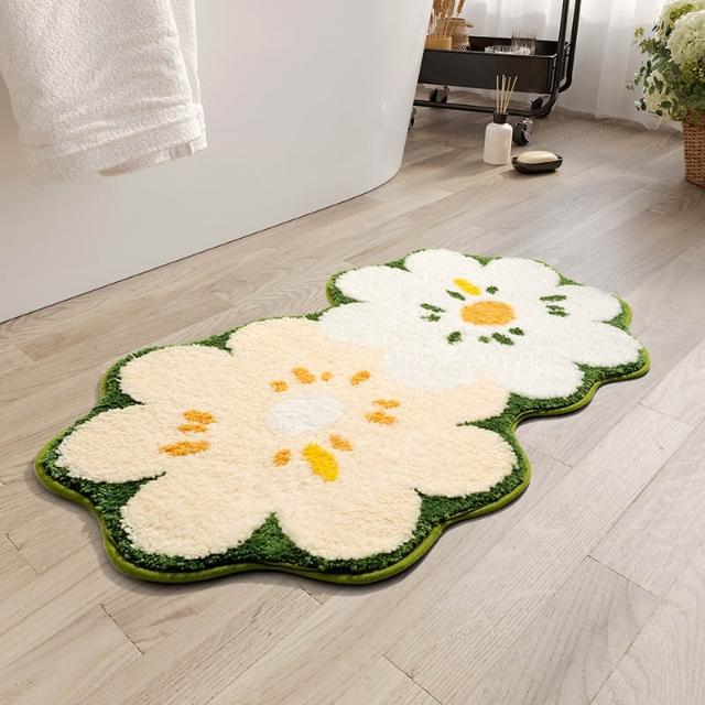 🚀台灣出貨&嚴選品質✨ 地毯耐臟易打理小清新ins風花花浴室吸水腳墊家用廁所仿羊絨地墊