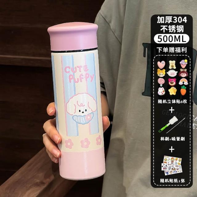 🚀台灣出貨&嚴選品質✨ 粉色少女心保溫杯女生高顏值吸管杯304不銹鋼學生上學直飲水杯子