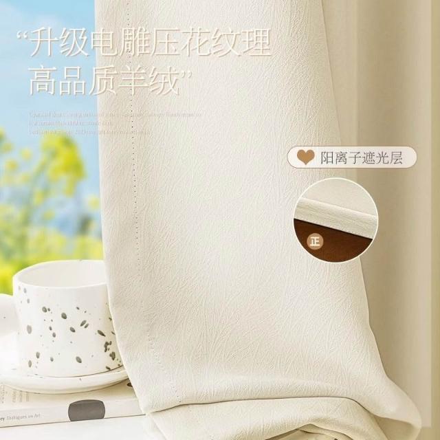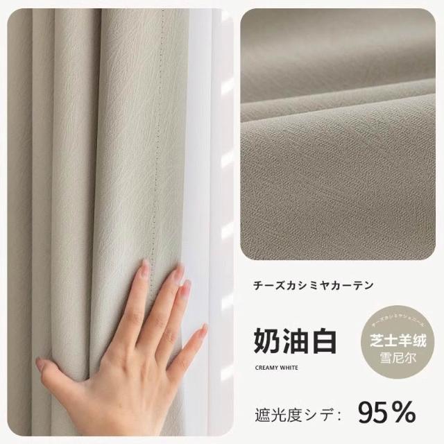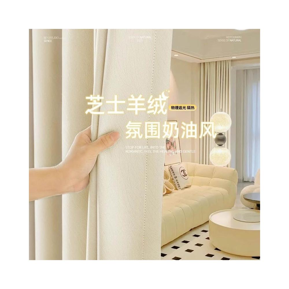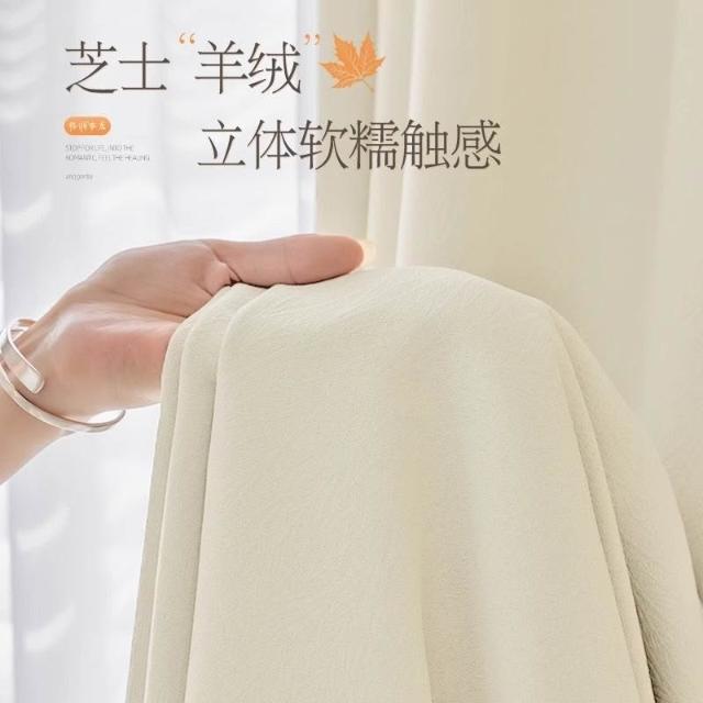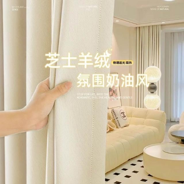 🚀台灣出貨&嚴選品質✨ 奶油風窗簾臥室遮光客廳現代簡約高級感遮陽隔熱布雪尼爾芝士羊絨