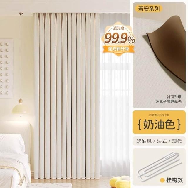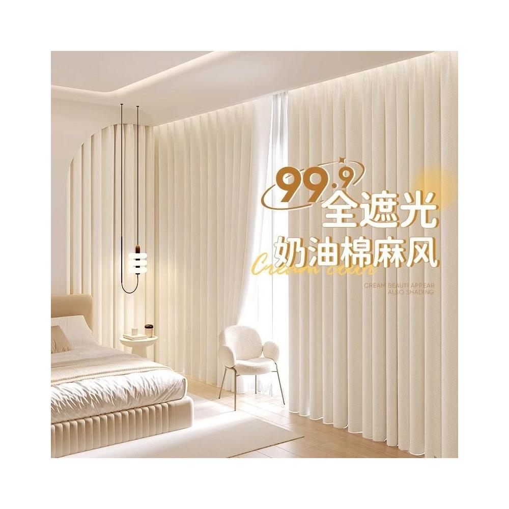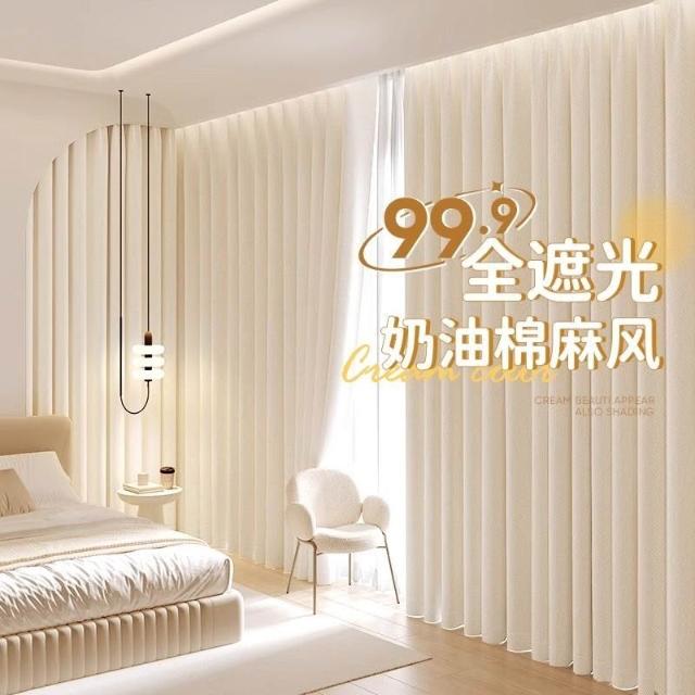 🚀台灣出貨&嚴選品質✨ 棉麻全遮光窗簾臥室高級感客廳防曬隔熱遮光2025新款奶油風布法式