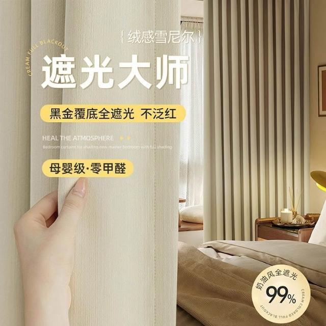 🚀台灣出貨&嚴選品質✨ 高溫定型輕奢奶油風雪尼爾窗簾客廳臥室2024新款高級遮光大師