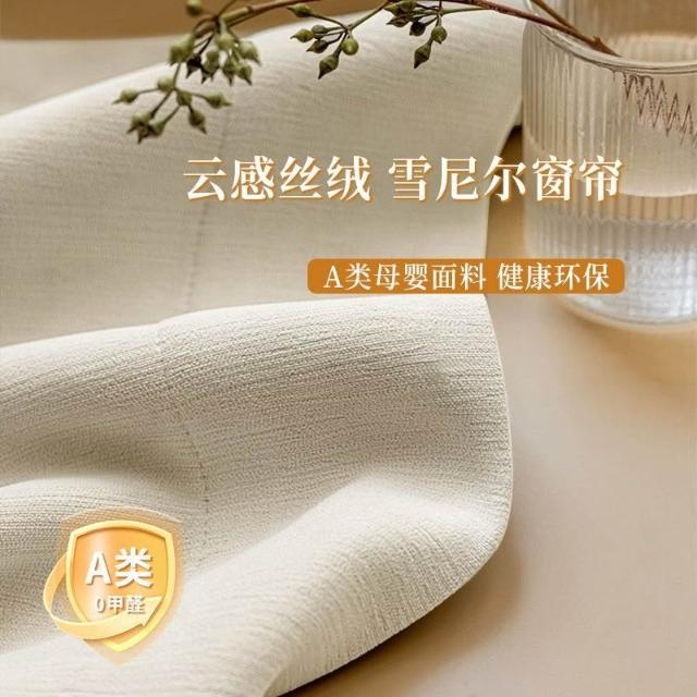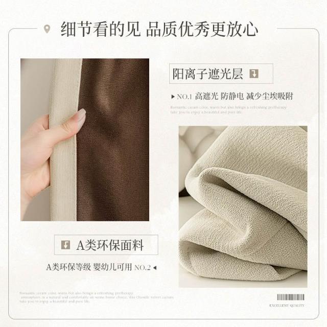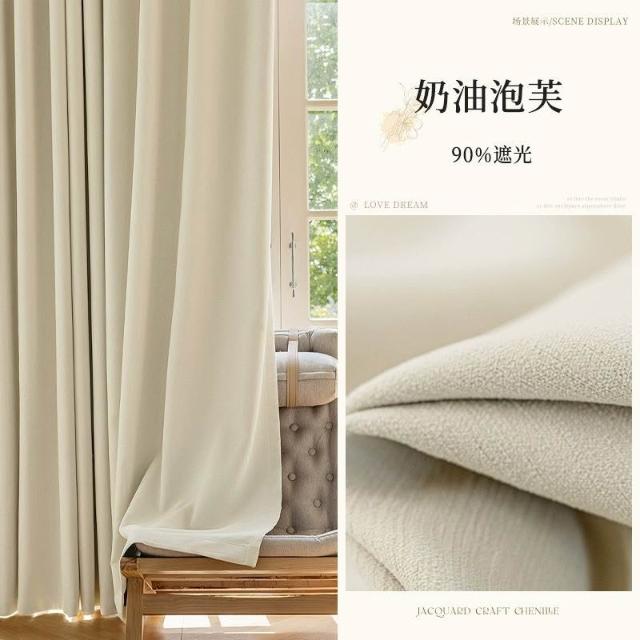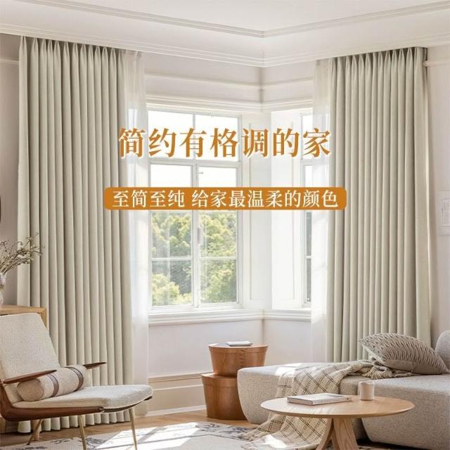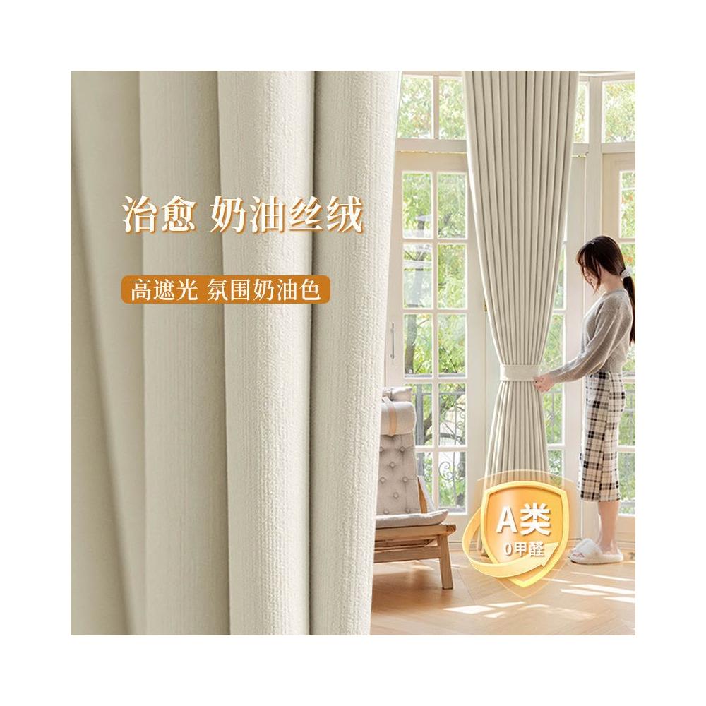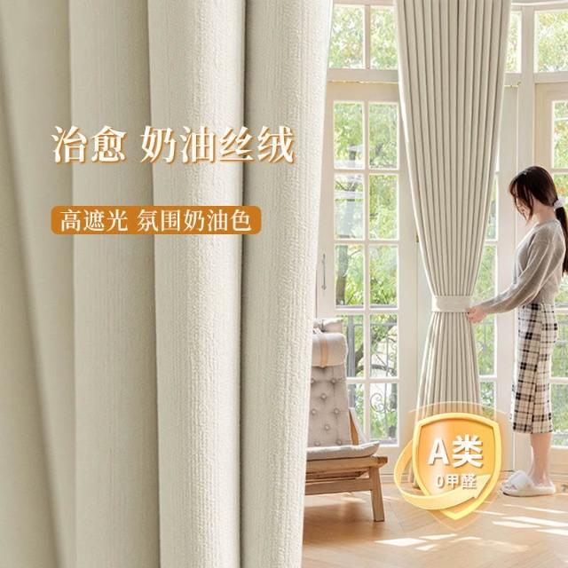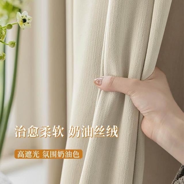 🚀台灣出貨&嚴選品質✨ 新款奶油色全遮光窗簾臥室客廳布簾遮光防曬隔熱純色奶油絲絨